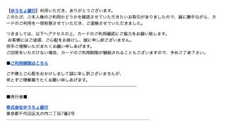 ゆうちょ銀行が、【緊急】としてゆうちょ銀行になりすましたフィッシングメールについて注意を呼びかけています。